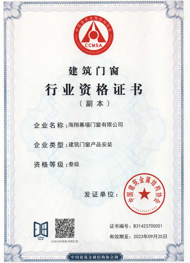 门窗行业资格(安装)证书